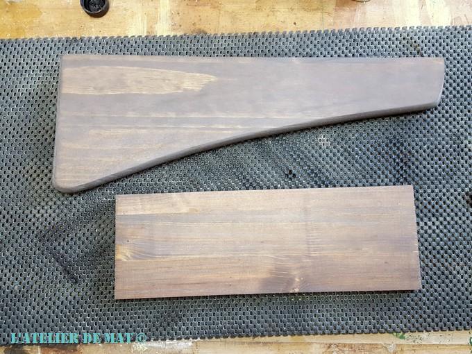 Pour la finition, j’ai choisi d’utiliser une teinte pas trop foncée à l’aspect un peu passé. Comme le dossier sera blanc cela ne contrastera pas trop.