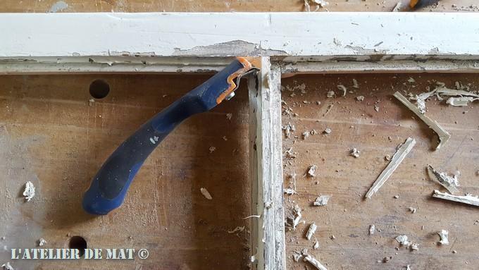 C’est le genre de petit outil dont on ignore l’existence et qui, une fois dans votre caisse à outils, devient vite indispensable. J’ai acheté le mien récemment pour enlever du mastic sur ces vieilles fenêtres et depuis je m’en sers tout le temps. Je dégrossis le travail de ponçage parfois nécessaire en enlevant peinture, vernis, mastic, ou toute autre matière collée sur une planche. Et quand cela ne gratte plus, il suffit de changer la plaque de fer qui fait office de lame.
