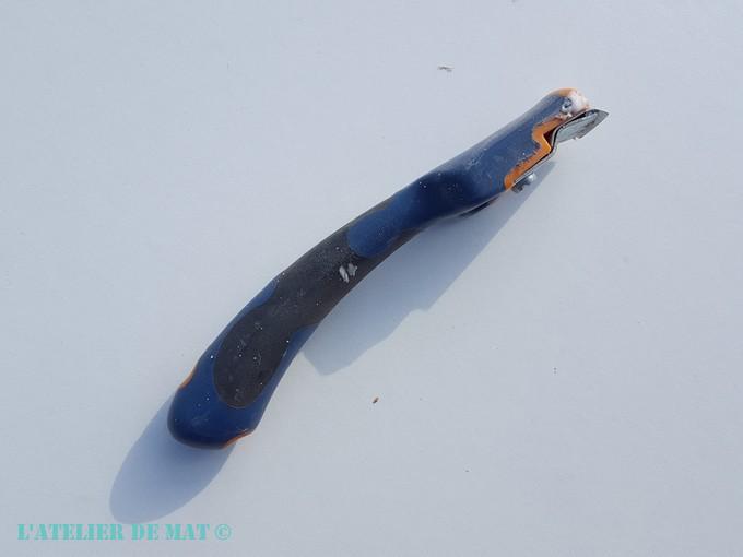 Vos aimez poncer ? Non… hein ! Bah moi non plus, et cette petite plaque de tôle toute simple fait des miracles. Elle évite bien souvent des ponçages longs et …ennuyeux pour être poli. Bien affûtée elle permet même de ne pas avoir à poncer du tout certaines fois. Elle peut aussi servir à enlever un vernis par exemple.
