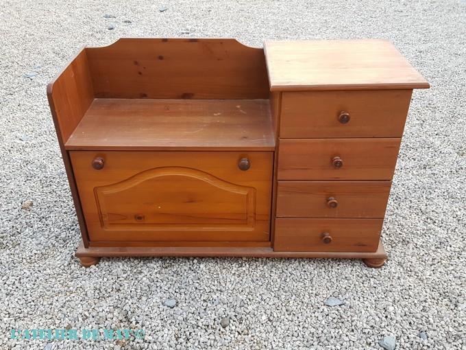 Bon OK j’entends l’excuse et pour remédier à cette « situation » j’avais planifié de lui ajouter des étagères dans son placard. Mais ça, c’était avant que je tombe sur ce petit meuble que j’ai pu récupérer gratuitement.