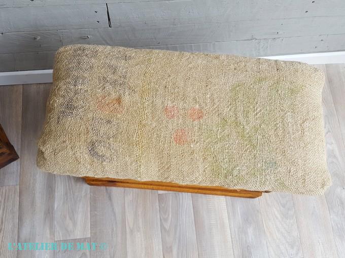 Malgré ma petite boulette de laver les sacs en toile de jute , le résultat est tout de même assez sympa pour cette assise. En fait cela colle pas mal au style global finalement.