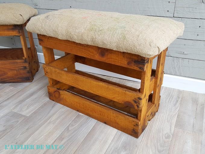 Et voilà le résultat final. Deux tabourets d’appoints au look campagnard. On pourrait facilement les imaginer issus d’une grange.