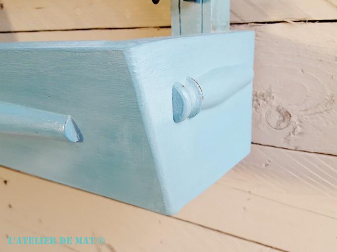 J’ai ajouté des crochets que j’avais en stock sur chaque montant du dossier pour apporter une fonctionnalité supplémentaire à ce vide poche mural.