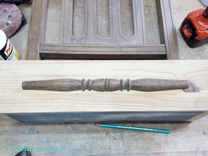 Et puis d’un coup l’idée m’est venue d’utiliser le barreau de chaise restant de la coupe des pieds. Niveau style cela collerait forcement avec le reste de la chaise.