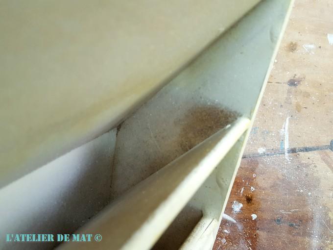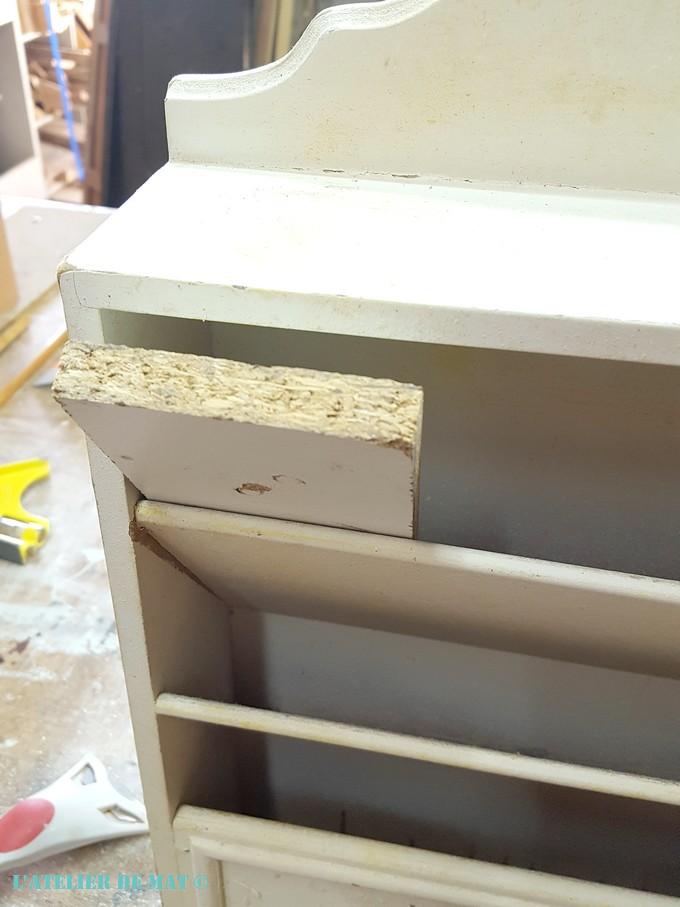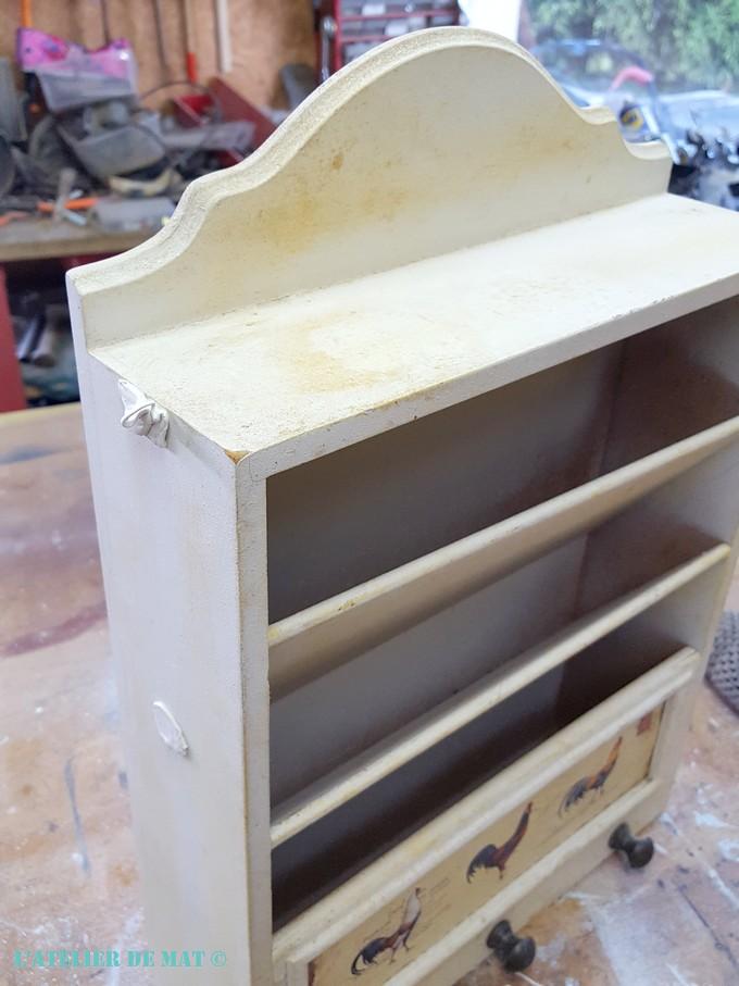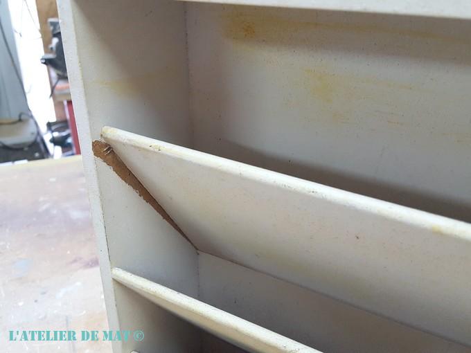 Un bon nettoyage était donc obligatoire et la seule petite réparation consisterait à remettre en place et fixer l’étagère supérieure. Rien de bien compliqué en perspective.