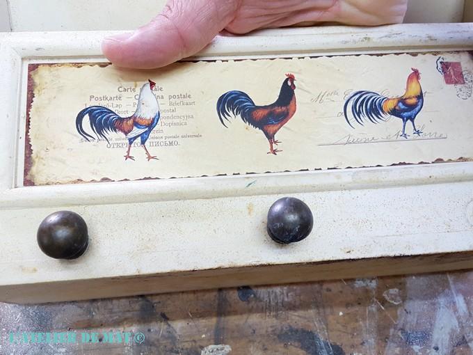 Maintenant au tour de cette belle image 😉 se trouvant en bas du trieur. Les coqs ont l’air d’être un ajout à l’image d’origine de carte postale. Comme cela ne sera pas cohérent avec le style que je recherche pour le trieur, le choix n’a pas été long à faire