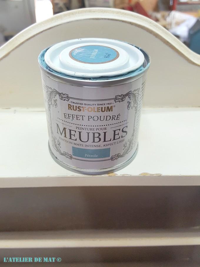 J’ai choisi d’utiliser cette peinture à effet poudré pour donner un nouveau look au classeur. Vous avez peut être déjà vu celle ci lorsque j’avais transformé une chaise en vide poches