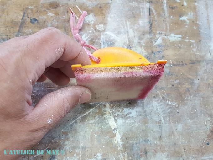 Et c’est là que je me suis souvenu que j’avais ce drôle de tampon en mousse qui traînait dans un coin de l’atelier. Vu la couleur qui est dessus, je pense que je ne m’en suis pas servi depuis au moins dix ans.