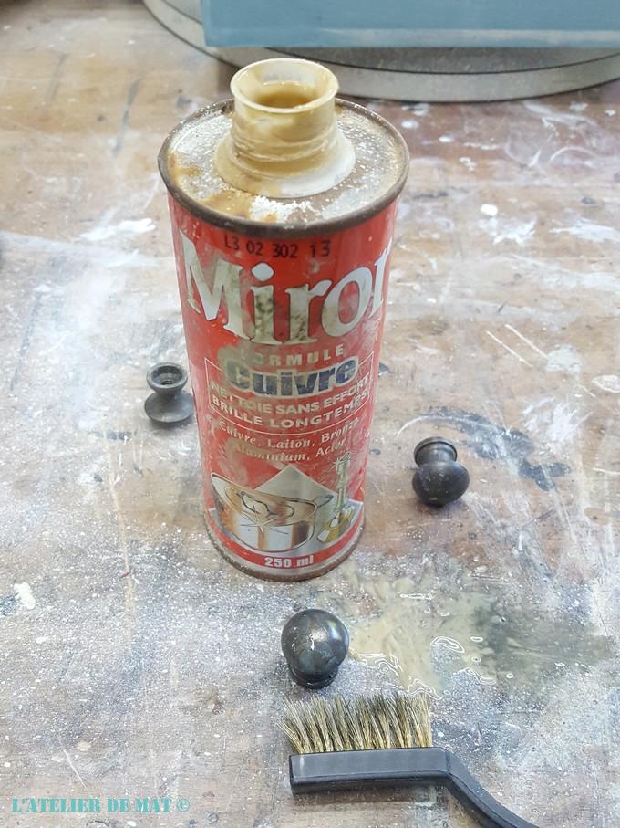 Rien de bien sorcier ici, il suffit de mettre du produit, de frotter avec une petite brosse en laiton puis de faire briller avec un torchon sec.