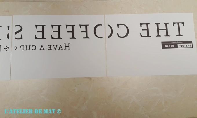 Ce site, lui aussi gratuit, permet de découper votre image initiale en autant de feuilles A4 que nécessaire pour réaliser votre panneau. Il n’y a que quelques paramètres à régler après pour imprimer et c’est parti. Je n’ai pas dû faire attention au paramétrage des marges d’impressions car j’avais du blanc entre mes lettres à cheval sur deux feuilles.
