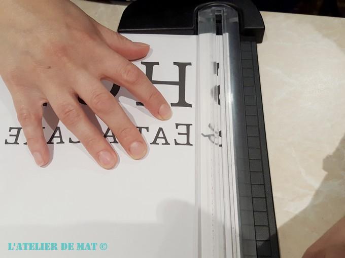 Typh, ma petite femme, est vite venue à bout de ce petit problème avec son massicot car il était indispensable d’enlever cette marge afin que ces lettres aient la bonne forme.