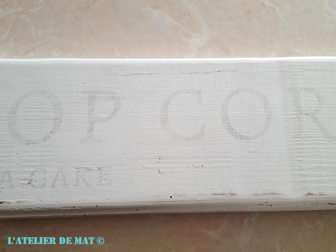 En une heure j’ai réussi à faire toutes les lettres. Je n’ai appliqué qu’une seule couche afin que cela soit plus facile par la suite de donner un effet vieilli. Poncer ça craint, donc moins je dois le faire plus je suis content ;).