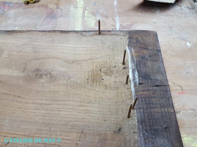 Cela doit faire un paquet d’années que ces clous sont là et si j’essayais de les enlever cela abîmerait le dessus de la planche en faisant des éclats. Alors autant ne pas prendre ce genre de risque.