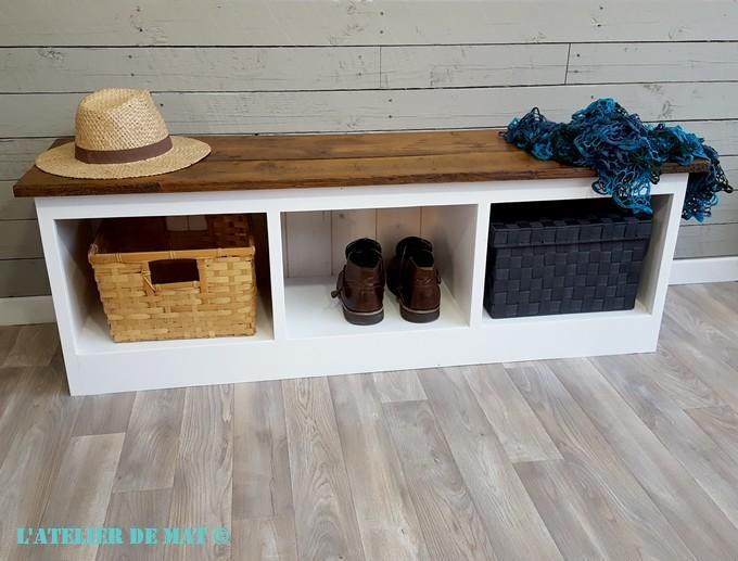 Bien que la création de ces casiers n’était pas le but premier de ce projet, ceux ci offrent un bon espace de rangement . C’est vraiment dommage que je n’aie pas la place de le mettre dans mon entrée parce que je me verrais bien le matin m’asseoir sur ce banc et mettre mes chaussures tranquillement.