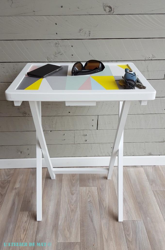 Quand on regarde cette petite table au départ c’est vrai que la jeter peut être tentant, mais c’est là que l’on s’aperçoit qu’avec des idées et du savoir faire elle devient vraiment superbe et dans l’air du temps. Personnellement je n’aurais jamais pensé à mettre du papier peint mais le résultat est là, je ne cache pas que lors de mes prochaines restaurations cette idée sera volée.