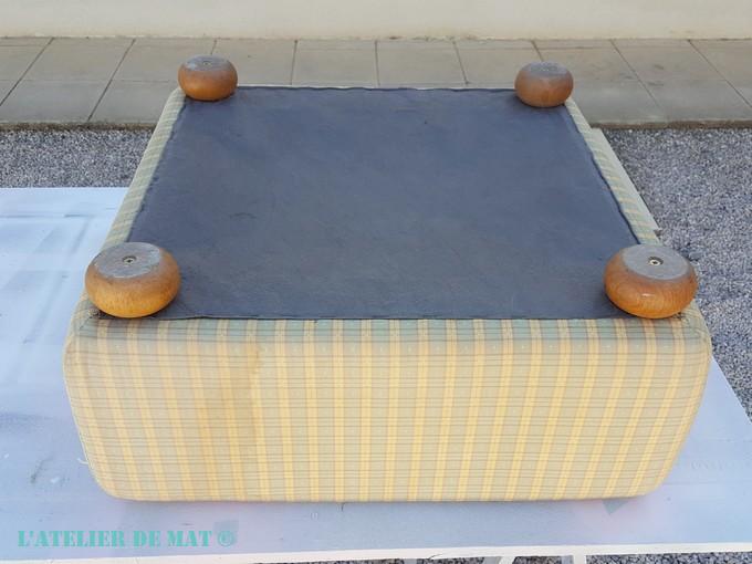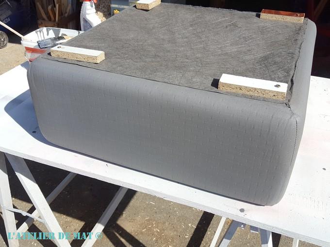 En ce qui concerne votre appréhension quant a l’aspect fini du tissu, il y aura forcement un changement. Pour cette ottomane, je suis parti d’un tissu assez souple et le résultat fini est proche d’un skaï léger au toucher.