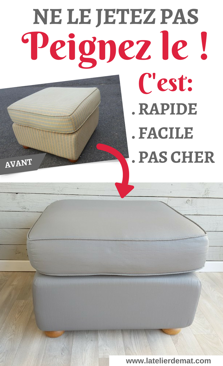 Dans l’article Les récups: Automne 2016 je vous parlais de cette petite ottomane que j’avais trouvé pour un prix modique dans un magasin de la Croix Rouge. J’ai acheté celle-ci pour tester une technique que j’ai vu à plusieurs reprises sur Pinterest et qui consiste à repeindre le tissu. Comme je ne suis pas sûr de ce que cela donnera je vais essayer de garder le budget au plus bas.