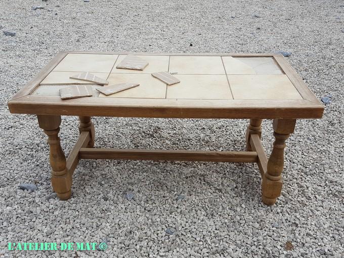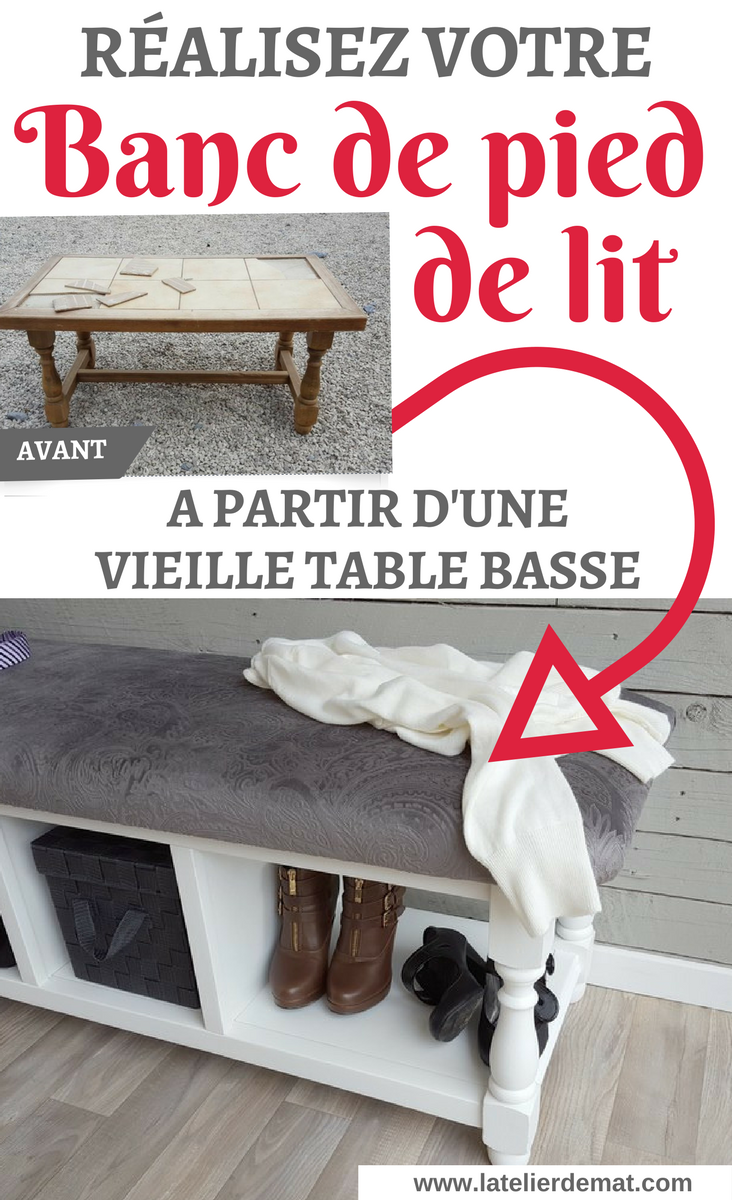 Le projet d’aujourd’hui me tient à cœur et ce pour deux raisons. La première est que j’ai su au moment où j’ai vu cette table basse dans le garage de ma mère ce que j’allais en faire. La deuxième est que je la stocke sur mon stand photo et que donc à chaque fois que je fais une séance photo je dois la déplacer. Comme cela fait plusieurs mois que cela dure j’en ai un « peu beaucoup » marre.. comme dirait mon plus jeune fils. Cette table basse au style « carreaux moches et brisés » va, si tout se passe bien, devenir un joli petit « banc de pied de lit ». Fiou c’est long comme nom pour un meuble mais j’ai vérifié sur le net et c’est bien le nom que ça porte ;).