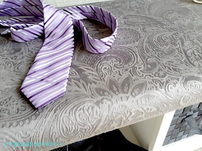 Ce tissu est très agréable au toucher et je n’ai pas pu résister à faire une photo en gros plan avec une de mes cravates pour faire comme dans les magazines de mode.