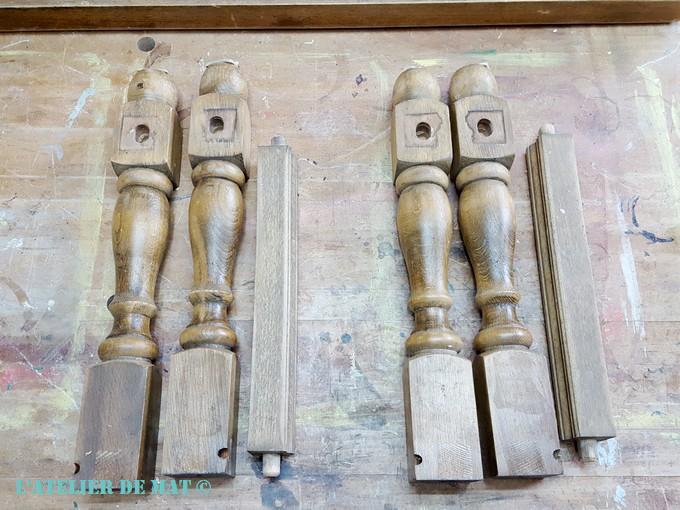 En vérifiant de plus près l’état des pieds j’ai vu que ces derniers bougeaient beaucoup et pour cause: ils n’étaient même pas collés !! Je vais donc devoir les coller ce qui va prendre du temps mais au moins je ne vais pas me galérer pour les poncer.