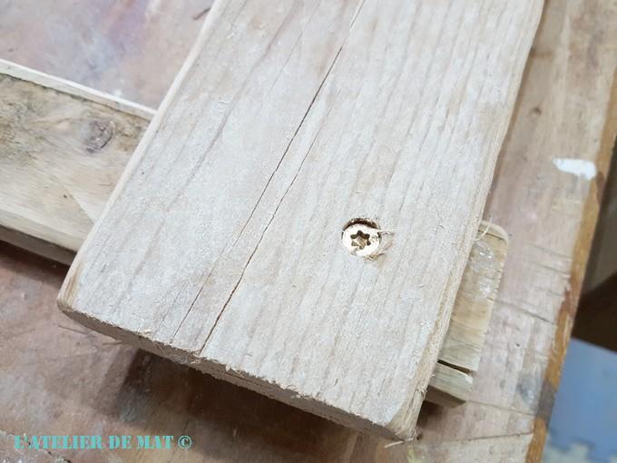Les photos ne vont pas peser très lourd alors j’ai fait un assemblage assez simple. J’ai mis une seule vis par montant pour chaque barreau. Depuis que j’ai découvert les vis de la marque Rocket je n’e m’en passe plus.