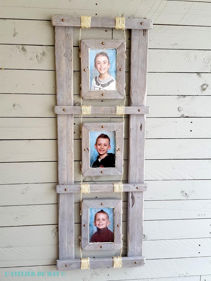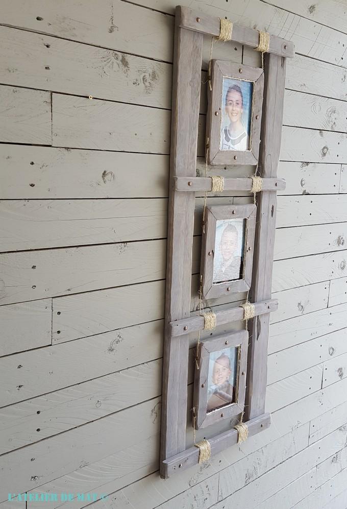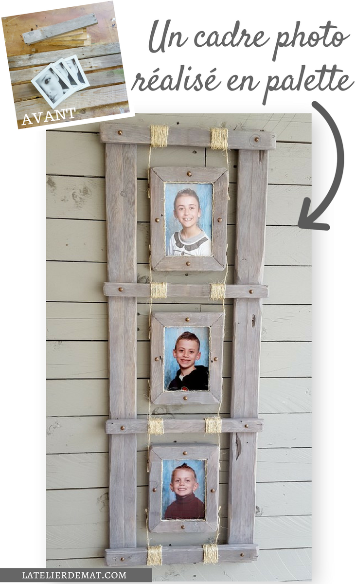 Si je devais résumer ces derniers jours, je dirais bien sûr qu’il a fait très chaud mais surtout que j’ai été victime d’une allergie prononcée au pollen. Pour ceux qui souffrent aussi de cela, vous imaginez bien que j’étais dans un état pitoyable. Pour ces deux raisons j’ai donc mis de côté tout projet qui demandait un gros travail de peinture car je ne voulais pas travailler dehors. C’est là que je me suis souvenu que j’avais acheté il y a quelques temps ces trois cadres photos pour 1€ pièce. Avec un peu d’imagination et quelques chutes de palettes il devait bien y avoir moyen de faire un truc dans le style « farmhouse » ou « rustique campagnard » si on préfère 😉