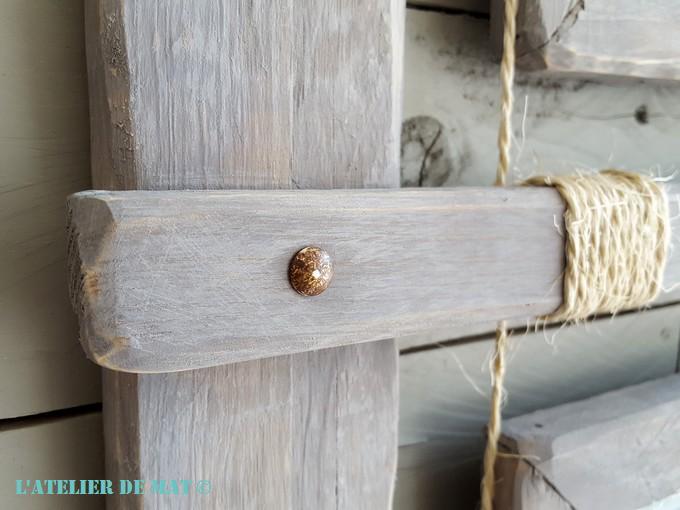 Pour apporter un peu plus de rustique encore, je suis parti sur l’idée d’ajouter un peu de cordelette 😉 et des clous tapissiers finition « rouillée ». Cela se trouve facilement en grande surface de bricolage le tout pour moins de 5€.
