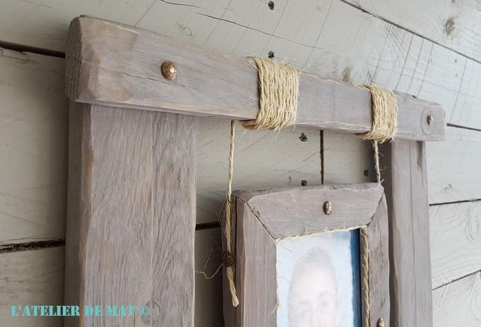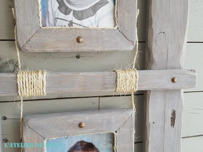 Il ne reste plus qu’à attacher un peu de cordelette à chaque cadre pour accrocher ceux-ci au support. Juste une boucle avec un clou enfoncé en son centre suffit pour que cela tienne.