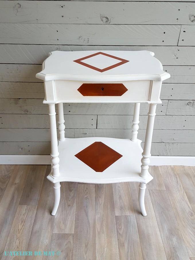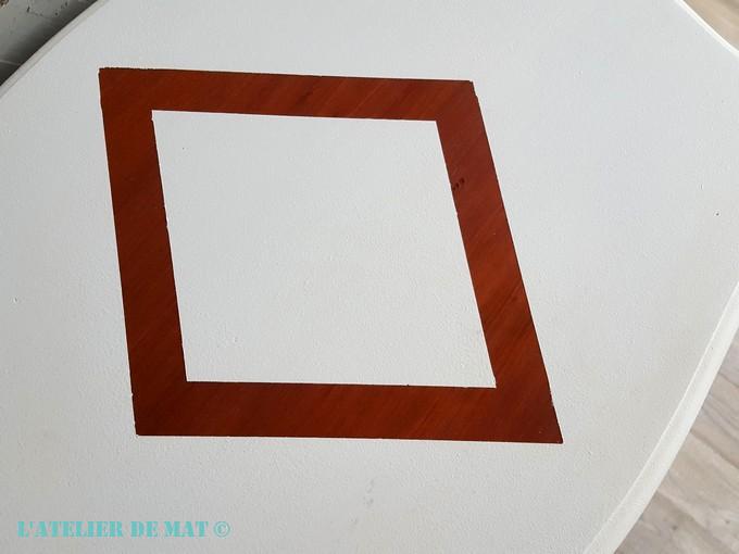 J’ai essayé de conserver le maximum de marqueterie sur le plateau inférieur et c’est pourquoi la forme n’est pas vraiment en diamant 😉