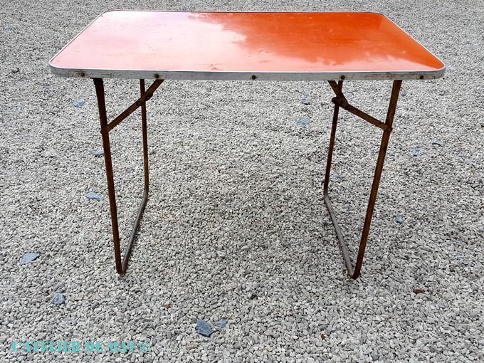 7. C’est en allant manger un midi que j’ai aperçu cette petite table de camping adossée à un tas de poubelles. Étant en voiture , heureusement que personne n’était trop près de moi vu le coup de frein que j’ai mis ;). Je n’ai pas encore cherché la date de fabrication de cette table pliante très vintage, mais elle ne doit pas être très récente. C’est une Lafuma qui est d’une légèreté impressionnante. Le plateau a quelques éclats et les pieds sont tachés par la rouille mais qu’est ce qu’elle est classe.