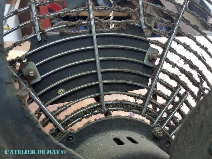 Et voila la carcasse du ventilateur sans moteur ou commande. Je me rappelle qu’a ce stade la je me suis dit qu’après un bon nettoyage, je ne serais pas loin de la fin.