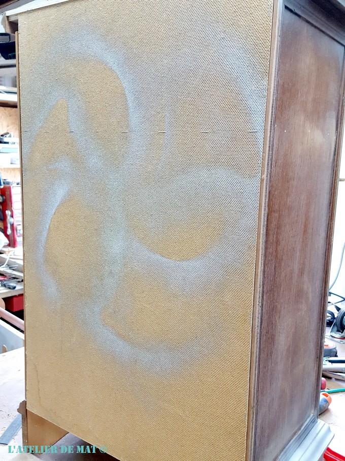 Le fond n’était pas en super état non plus. Il va vraiment falloir que j’arrête d’écouter cette petite voix qui a trop tendance à me dire: « Oh regarde un meuble sur le trottoir, arrête toi et récupère le ! » 😉