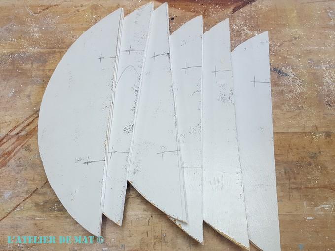 Les deux photos sont situées juste après la découpe des demies lunes en contreplaqué.