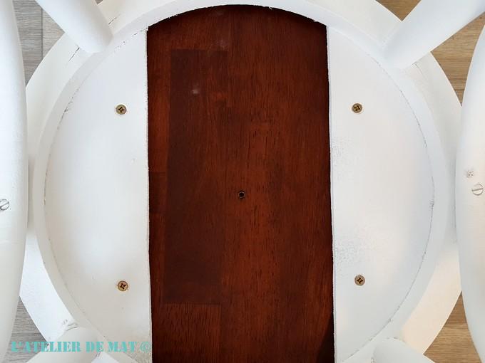 Ou alors vous avez posé l’assise marron sur le trou et les parties blanches vissées par en dessous pour prendre en sandwich le tour du tabouret ?