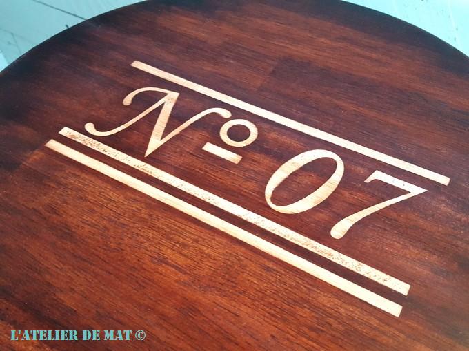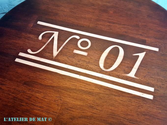 Les trois tabourets ont tous un numéro différents. J’aurai pu la jouer classique et les numéroter de 1 à 3 mais ce n’était pas assez personnalisé.