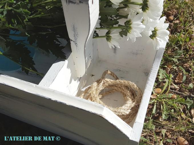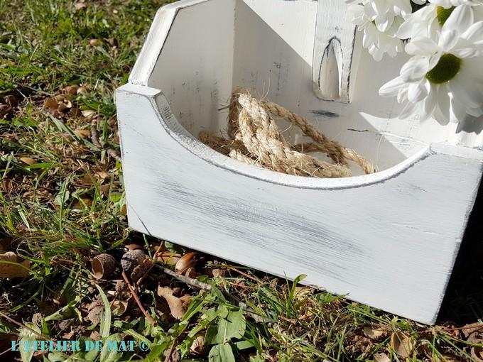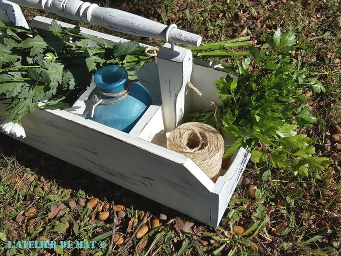 Afin que la peinture soit protégée un minimum, j’ai passé une couche de vernis acrylique sur l’intégralité de la boite. Pas de risque qu’elle s’abime ainsi lors d’une utilisation au marché, au jardin ou même en tant que déco.
