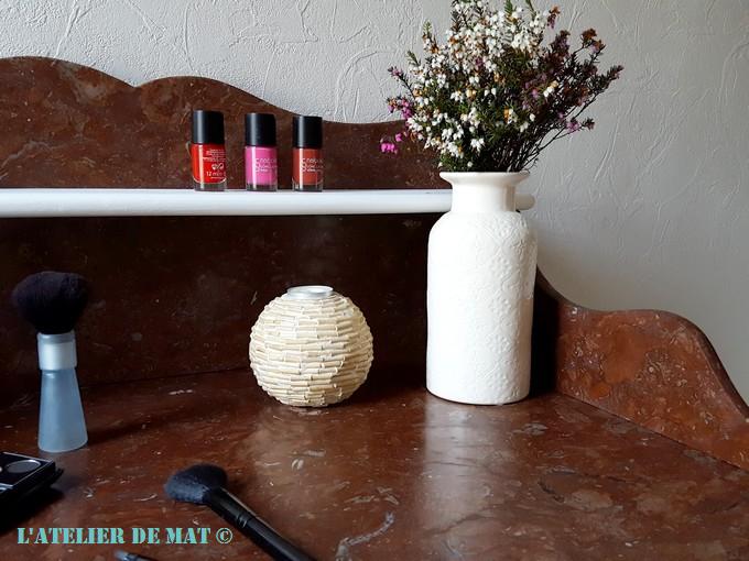 Et puis le marron du marbre s’accorde désormais bien au blanc de la coiffeuse à mon sens. Vous ne trouvez pas?