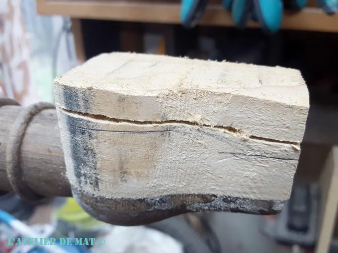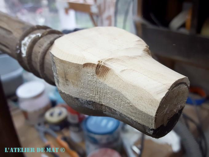 Alors j’ai décidé de trancher dans le vif et j’ai opté pour amputer une partie du pied. L’idée était d’enlever la partie mangée par les vers et de la remplacer par un morceau de bois. Pas de difficulté particulière en principe !