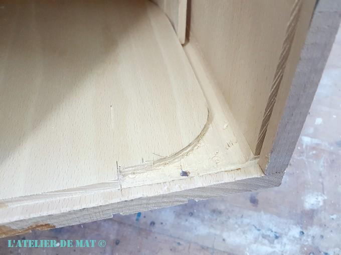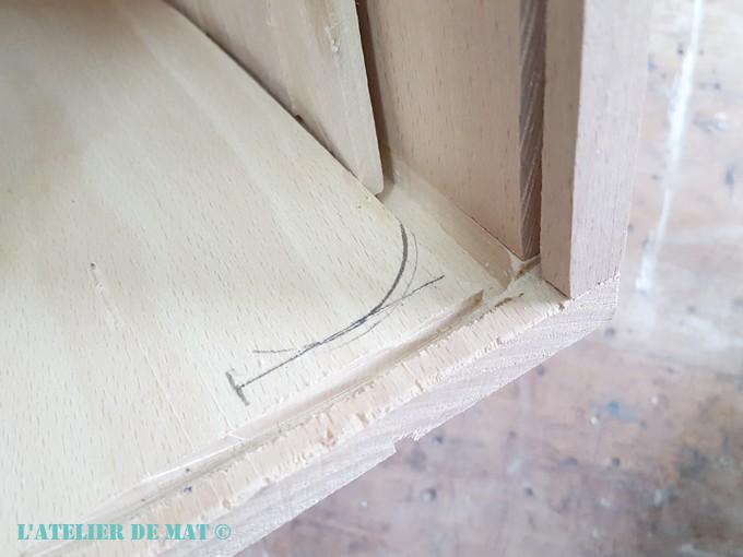 A l’aide d’un ciseau à bois j’ai enlevé le surplus de bois au fur et à mesure. Ce n’est pas difficile à faire il faut juste avoir un ciseau bien affuté, être patient et y aller petit à petit.