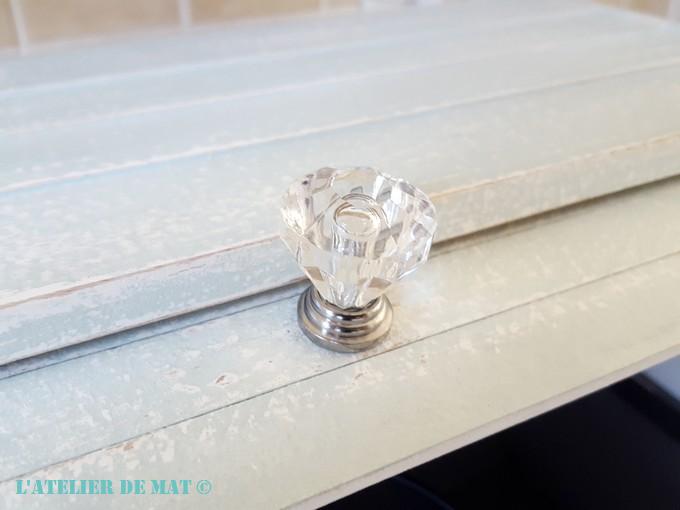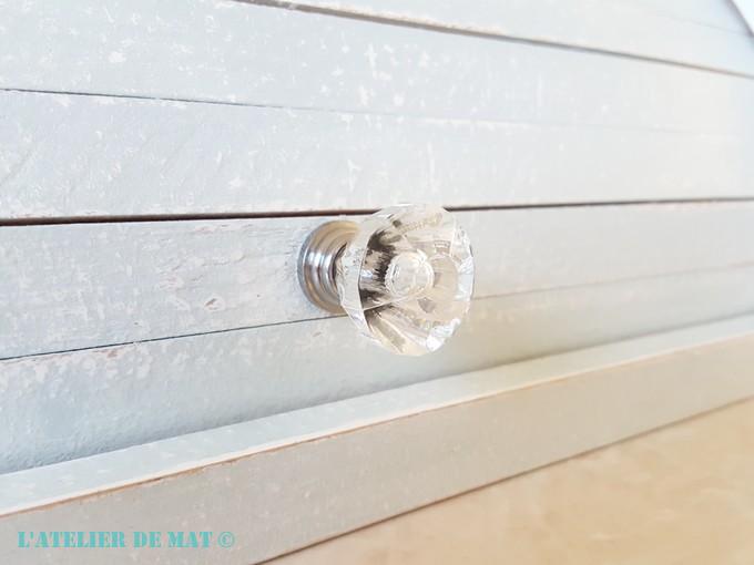 Pour remplacer la poignée d’origine, j’en ai utilisé une du même style que celles utilisées sur le relooking de cette coiffeuse. Celle ci est cependant plus petite. Parfaite en somme pour être utilisée sur une boite comme ici ;).