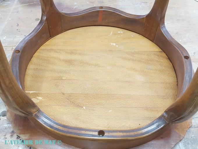 La petite surprise du démontage, le contreplaqué se décolle légèrement au niveau des pieds. Rien de bien méchant ici. Un peu de colle et cela sera vite réparé.