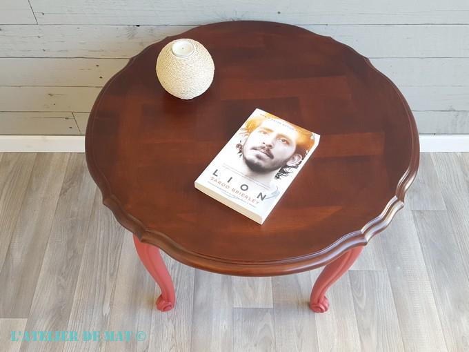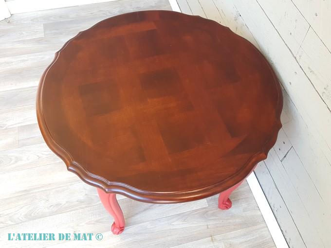 J’avais un peu peur que la marqueterie du plateau disparaisse trop avec la couleur teck mais il n’en est rien, ce qui me laisse pousser un gros ouf de soulagement ;).