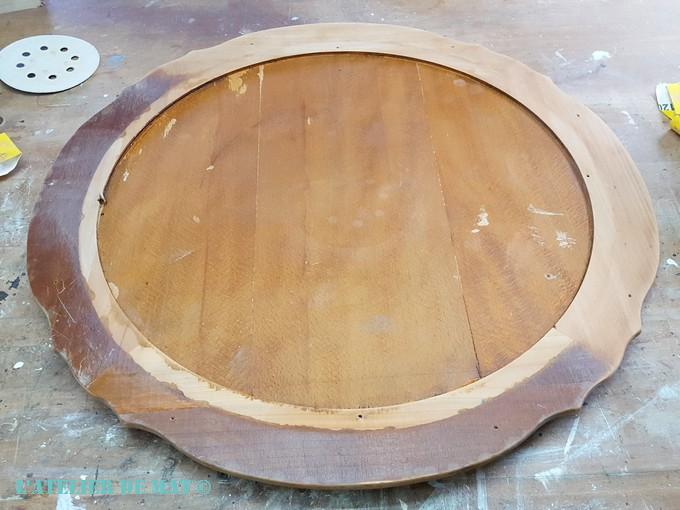 J’ai profité de ce temps pour attaquer le ponçage du plateau. Le pauvre avait dû connaître de meilleurs jours car il était vraiment en piteux état.