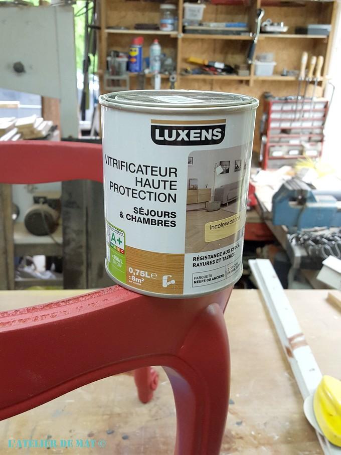 J’ai donc dû refaire un léger ponçage au grain 240 pour les faire disparaître. Après cela j’ai appliqué une couche de vitrificateur au pinceau et comme le résultat n’était pas à la hauteur de mes attentes, j’ai appliqué une seconde couche mais au pistolet ce coup ci.