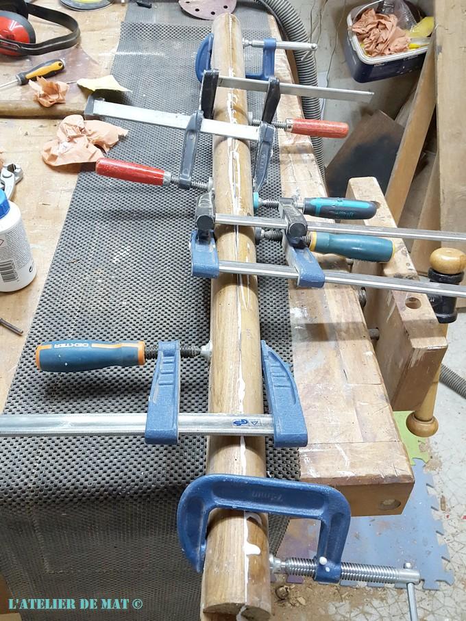 Avec beaucoup de colle à bois et avec beaucoup de serres joints, j’ai recollé celui ci. Comme le dit le dicton: « on n’a jamais assez de serres joints » ;).
