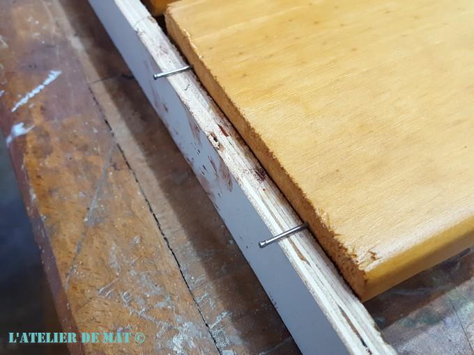 Celles ci seront fixées par les côtés avec des vis ainsi que par des tasseaux que j’ai installés dans le dos du lit.