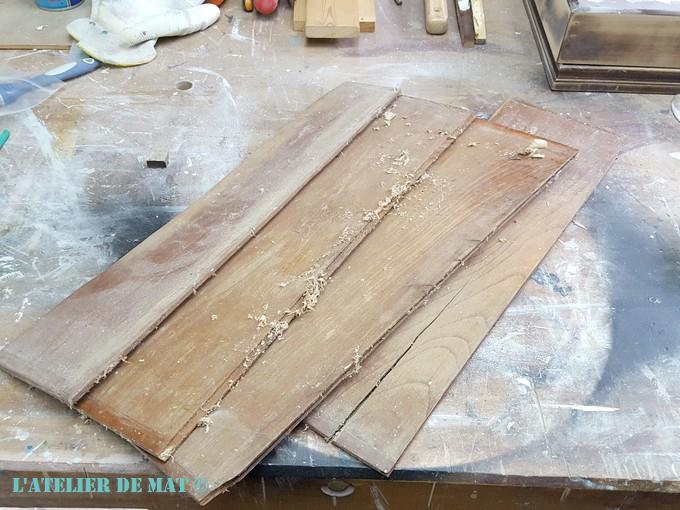 Pour moi on peut toujours faire quelque chose avec du bois même vieux ou en mauvais état. C’est pour cela que je ne jette jamais de bois massif. Après quelques coups de scie, j’ai obtenu les planches nécessaires pour mes futurs tiroirs. Elles ne sont pas encore très jolies mais patience 😉