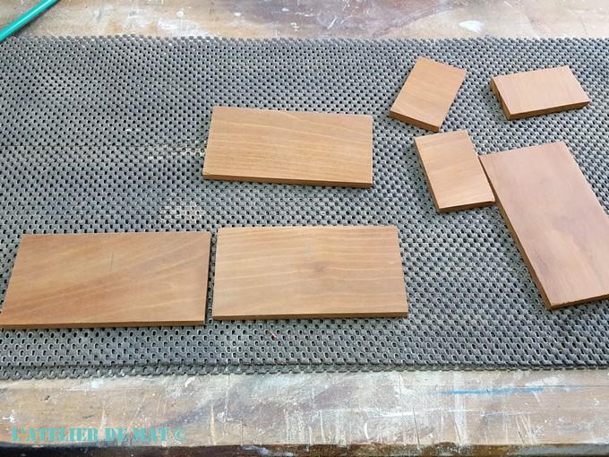 Après cette petite pause de contemplation, j’ai procédé au débit des parties nécessaires. Les tiroirs ne seront pas très profonds, d’où les petits cotés, mais seront assez hauts pour être quand même utilisables.