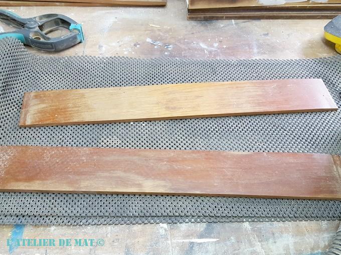 Pendant que la colle séchait, je me suis penché sur la problématique des tiroirs. Afin que ceux-ci soient esthétiques et pratiques, le bois devrait être assez fin, et le bois fin, ce n’est pas le plus facile à trouver ou à faire. Et je me suis rappelé que j’avais ces chutes me restant de ce projet.