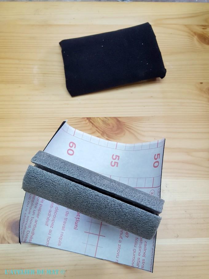 J’ai profité du temps nécessaire au séchage pour préparer les éléments intérieurs de ce petit cadre à bijoux. Pour cela je vais me servir d’un rouleau de film adhésif en finition velours.